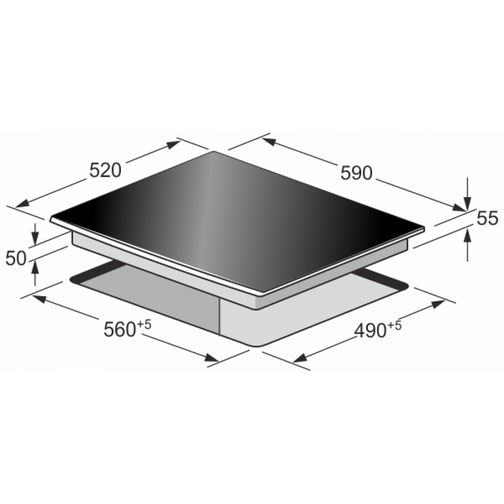 1 × Ø 23,0/ 16,0/ 12,0 cm – 2,3/ 1,6/ 0,8 kW – Triple heating zone 1 × Ø 20,0 cm – 1,8 kW 2 × Ø 16,5 cm – 1,2 kW