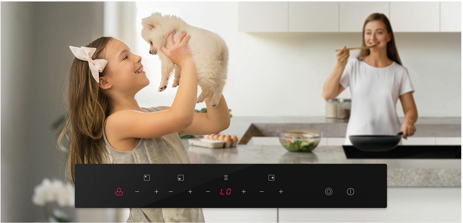 индикатор остаточного тепла, кнопка блокировки панели, Блокировка кнопки включения