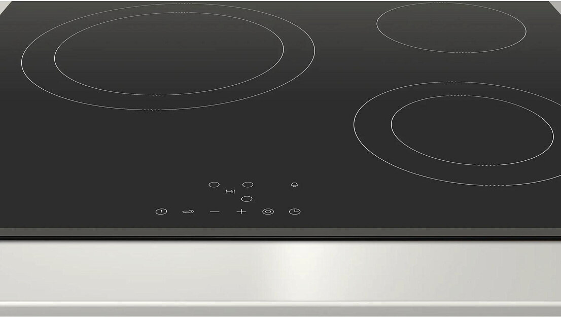 защитное отключение конфорок, индикатор остаточного тепла, кнопка блокировки панели, автоотключение