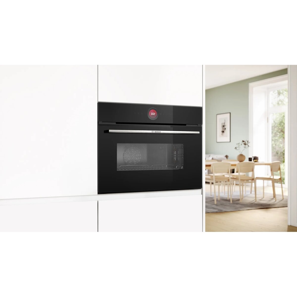 быстрый нагрев, добавление пара, поддержание тепла, подогрев посуды, размораживание, таймер, экорежим, 45.5, Home Connect, Вентилятор охлаждения, Встроенные часы, Дисплей, Меню Bake and Roast assist