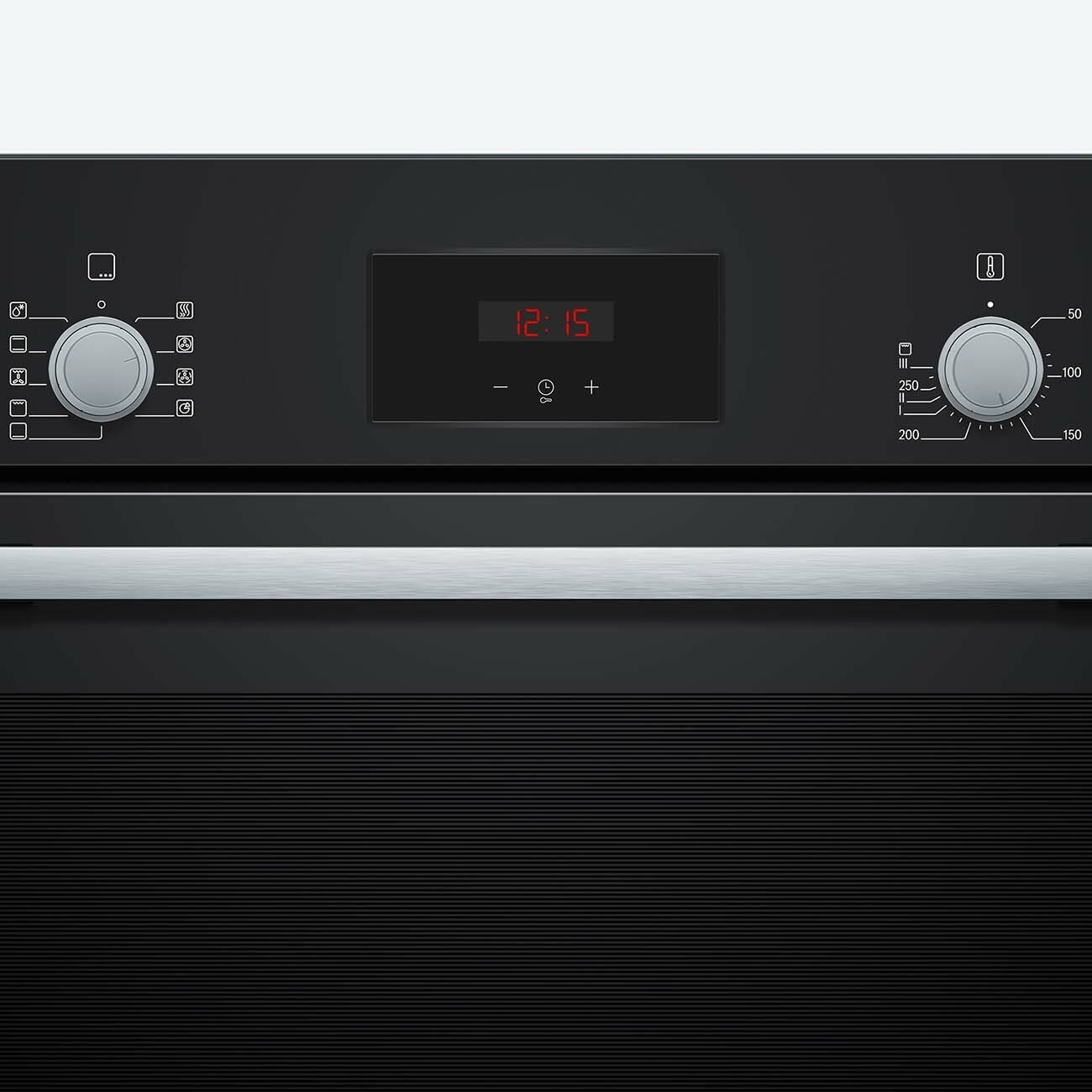 дополнительные режимы: 3D горячий воздух, горячий воздух gentle, режим для пиццы; телескопические направляющие на 1 уровне; LED-дисплей c индикацией красного цвета; многофункциональные электронные часы EasyClock включают в себя бытовой таймер, таймер приготовления, установку окончания приготовления; дверная ручка; галогенное внутреннее освещение; система охлаждения прибора позволяет встроить в любой кухонный гарнитур; длина сетевого кабеля: 100 см, тип штепсельной вилки: вилка с заземлением; предохранители: 16 A, напряжение: 220-240 В, размеры ниши для встраивания 575-597x560-568x550 мм, вес без упаковки - 31,098 кг