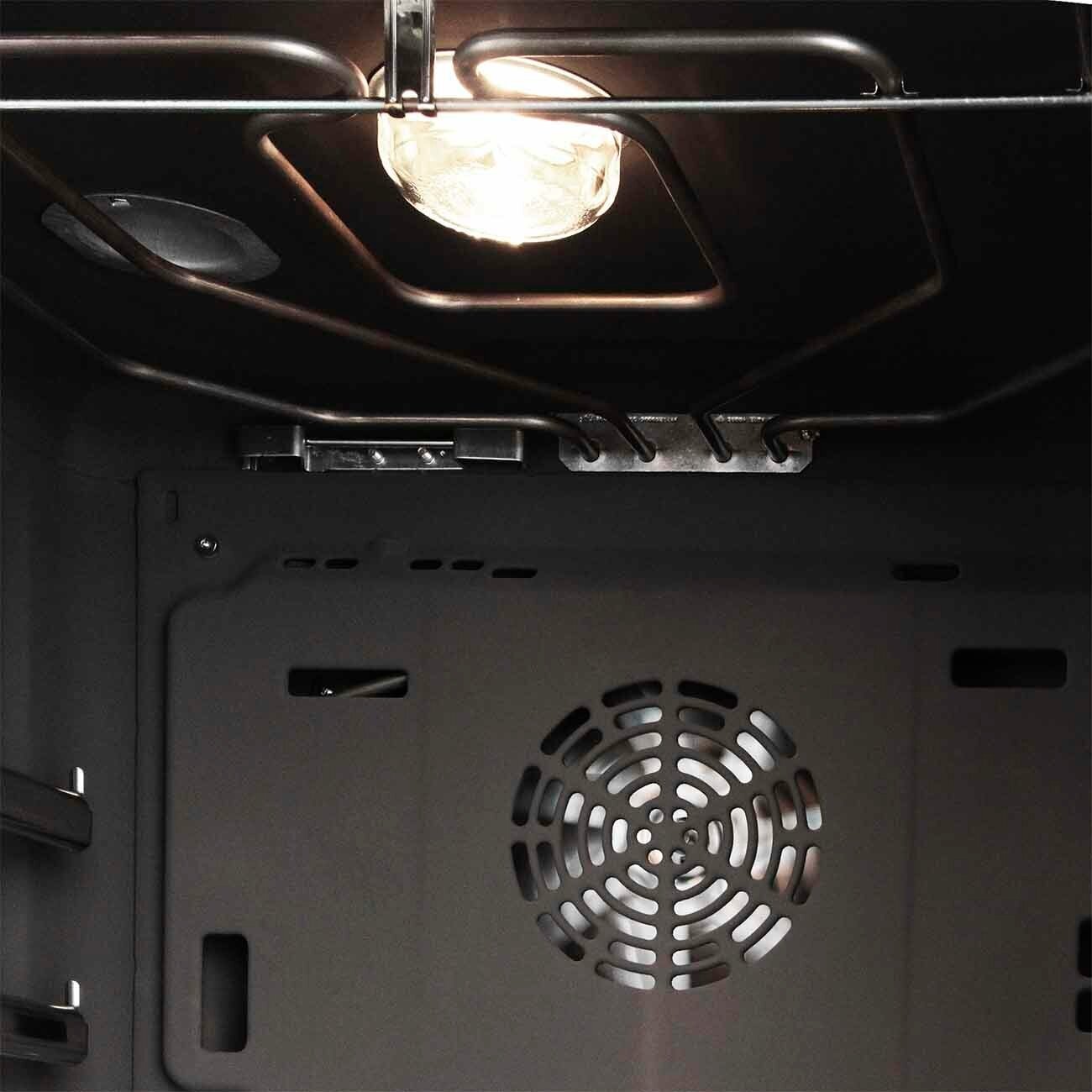 электронные часы, вентилятор охлаждения, самоочистка ecoClean, режимы: пицца, горячий воздух, горячий воздух нежный, размеры ниши для встраивания 575-597x560-568x550 мм, вес без упаковки - 34,726 кг