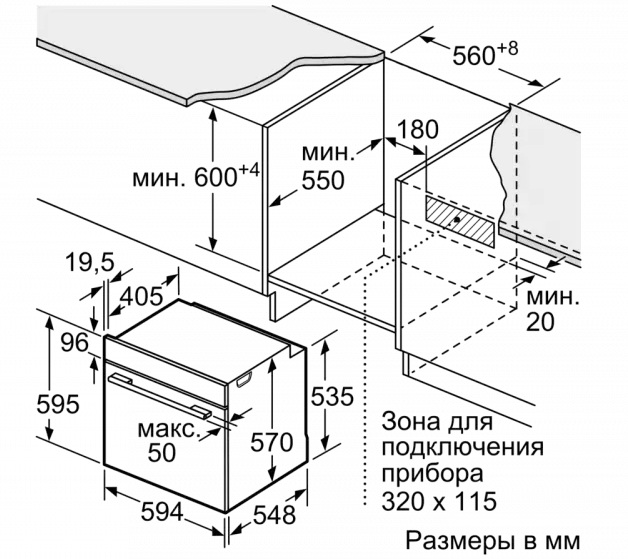 Энергопотребление в режиме конвекции за цикл (2010 / 30 / EC): 0.81 Размер большого противня: 1290 Высота без рабочей поверхности (мм): 595 Материал двери: стекло Материал панели управления: стекло Возможность установки телескопических полозьев (заказываются дополнительно) Глубина при открытой двери (мм): 1040 Тип штепсельной вилки: Вилка с заземлением Освещение духовки 1 x 25 Вт