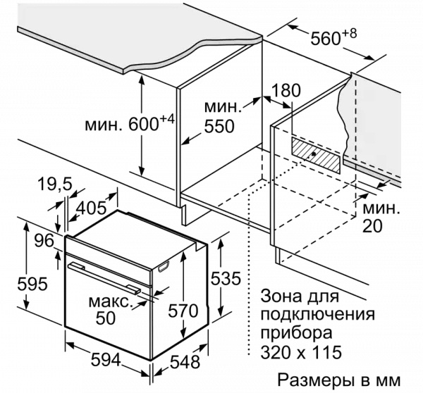 Энергопотребление в режиме конвекции за цикл (2010 / 30 / EC): 0.81 Размер большого противня: 1290 Высота без рабочей поверхности (мм): 595 Материал двери: стекло Материал панели управления: нержавеющая сталь Глубина при открытой двери (мм): 1040 Тип штепсельной вилки: Вилка с заземлением Освещение духовки 1 x 25 Вт Stop-функция