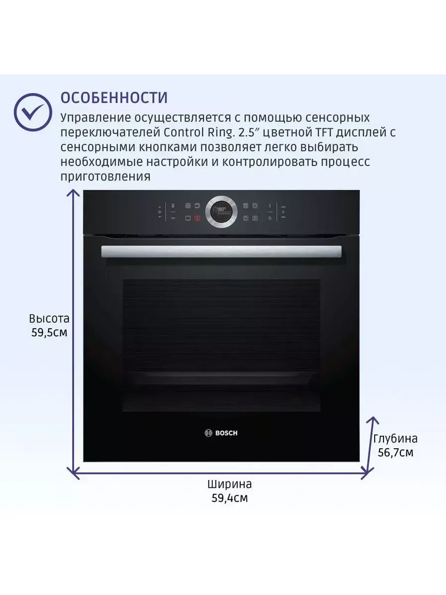 электронные часы, таймер с отключением, вентилятор охлаждения, блокировка от детей, размеры ниши для встраивания (ВхШхГ) мм 585-595x560-568x550, длина сетевого кабеля - 120 см