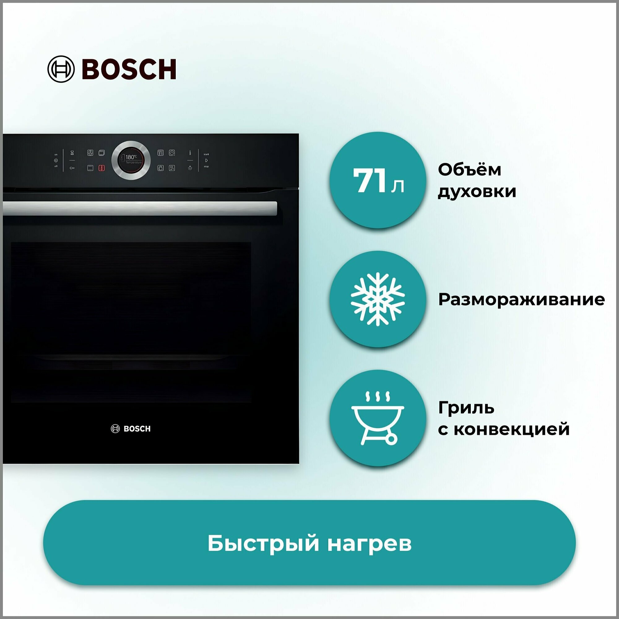 быстрый нагрев, поддержание тепла, подогрев посуды, размораживание, таймер, true, Вентилятор охлаждения, Встроенные часы, Двухуровневое приготовление, Дисплей, Доводчик дверцы духовки, Полностью стеклянная внутренняя дверца, Хромированные направляющие, вентилятор охлаждения