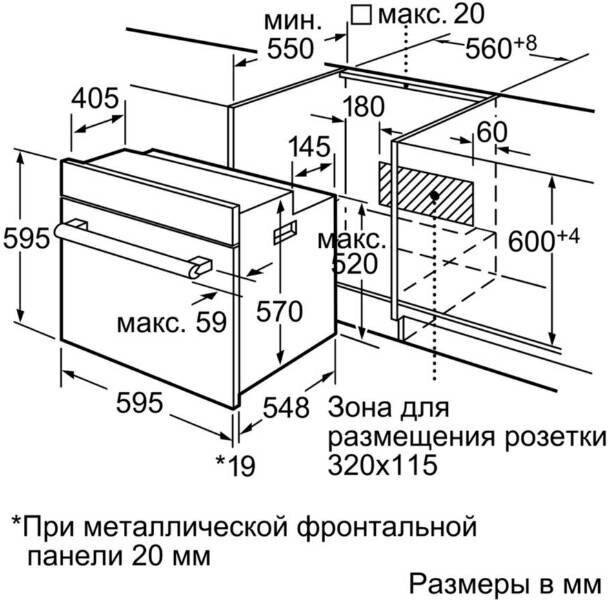 Размеры ниши для встраивания (В х Ш х Г), см: 58.5-59.5 х 56-56.8 х 55
