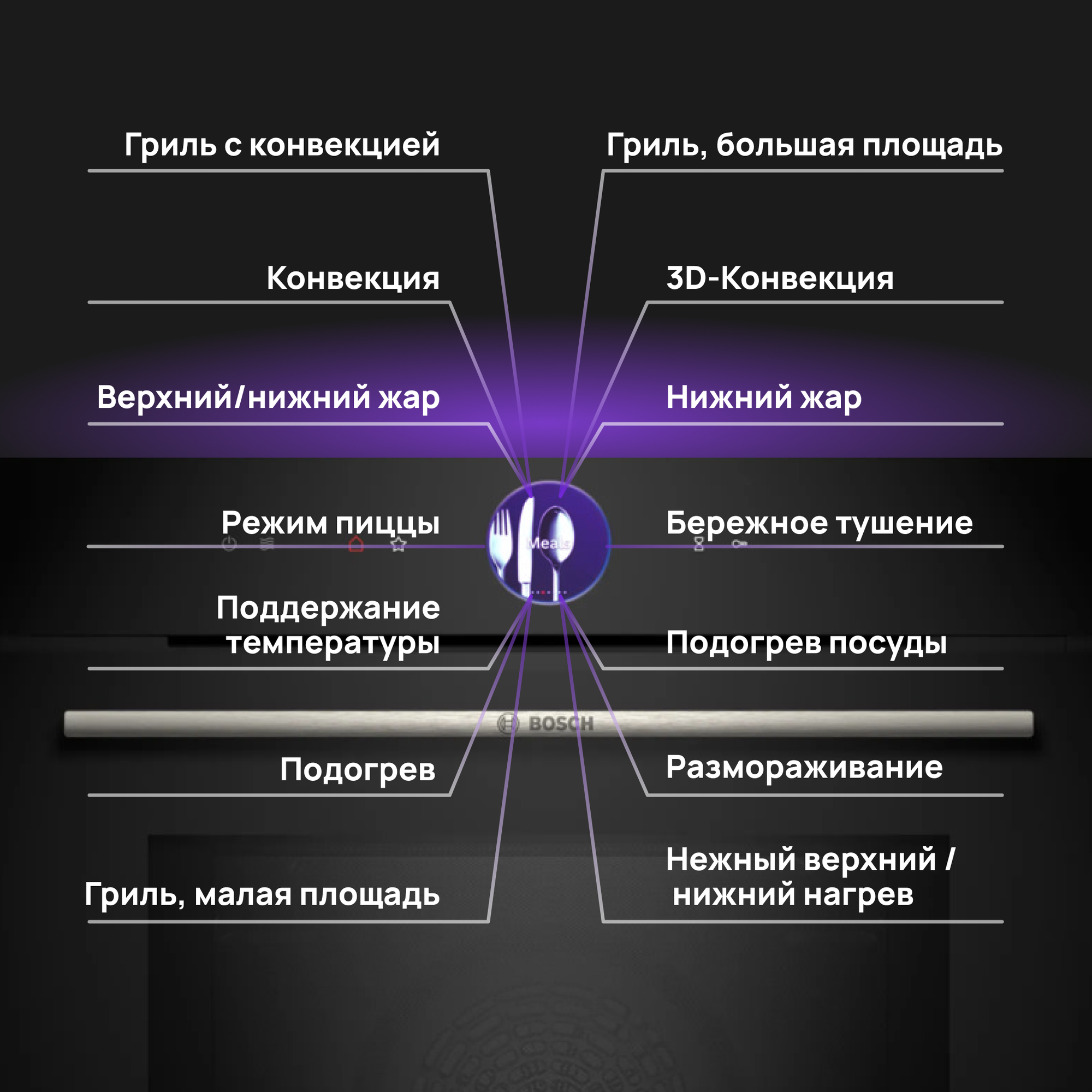 большой гриль, верхний нагрев, верхний нагрев + конвекция, верхний нагрев + нижний нагрев, верхний нагрев + нижний нагрев + конвекция, гриль, гриль + конвекция, конвекция, малый гриль, нижний нагрев, нижний нагрев + конвекция, 3D-горячий воздух, Air Fry, true, Верхний/нижний нагрев, Гриль + вентилятор, Гриль для большой площади, Гриль с циркуляцией воздуха, Независимая, Нижний нагрев + Турбо (Пицца), Поддержание температуры, Размораживание, Щадящий верхний/нижний нагрев, Щадящий горячий воздух