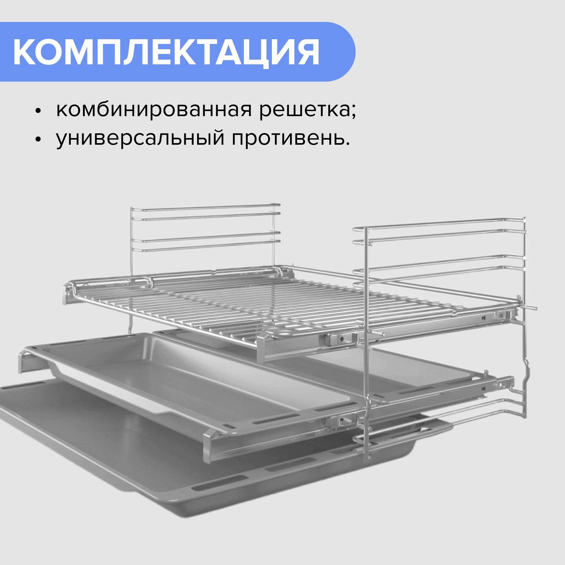 универсальный противень, 2 узких противня, комбинированная решетка