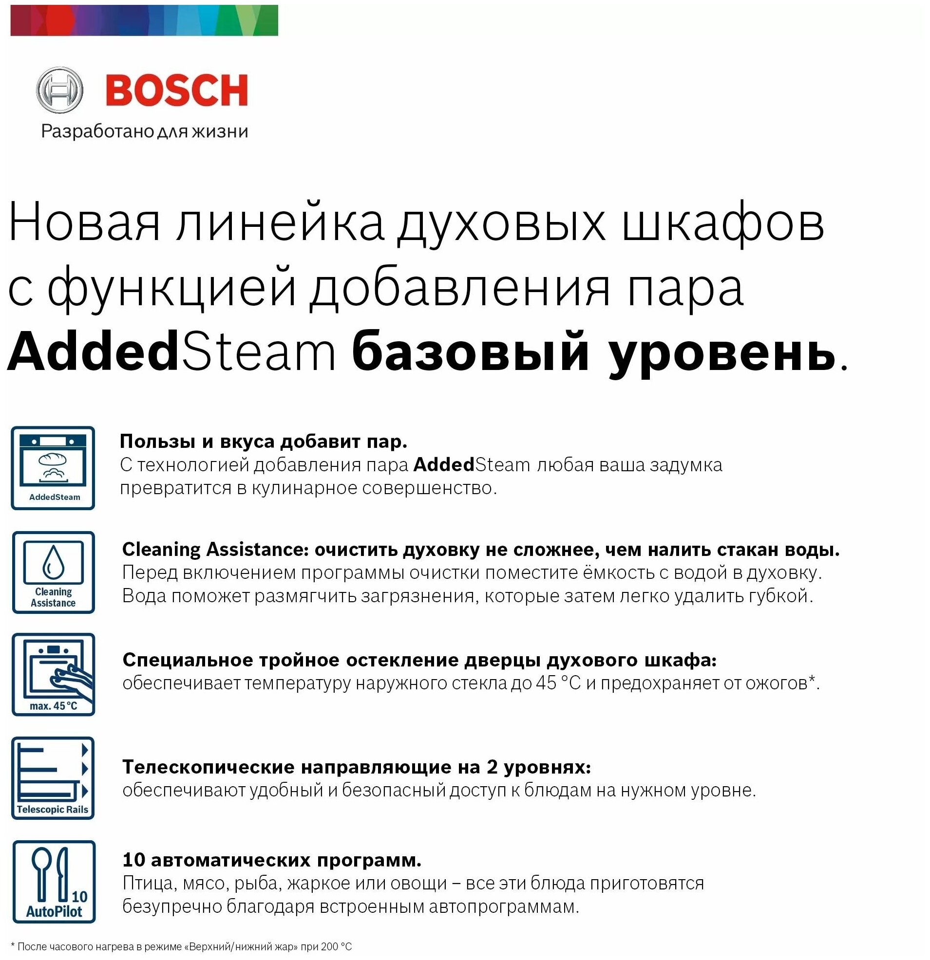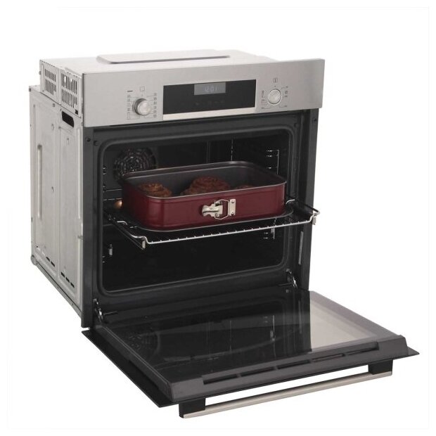 быстрый нагрев, добавление пара, размораживание, таймер, Вентилятор охлаждения, Встроенные часы, Двухуровневое приготовление, Дисплей, Доводчик дверцы духовки, Защитное покрытие от отпечатков пальцев, Полностью стеклянная внутренняя дверца, Хромированные направляющие