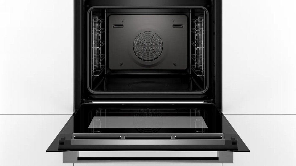 4D-горячий воздух 4D-горячий воздух Система «4D-горячий воздух» (4DHotАir) вдуховых шкафах немецкой фирмы Bosch изновейшей серии 8позволяет готовить нанескольких уровнях одновременно без смешивания вкусов изапахов. Обычно при приготовлении блюд вдуховом шкафу указывается, накаком уровне должен размещаться противень, чтобы получить лучший результат, так как даже если назадней стенке установлен вентилятор, распределение нагретого воздуха нестановится равномерным. Такой вентилятор скрыльчаткой изнержавеющей стали имеется ивдуховках, оснащенных программой «4D-горячий воздух», нодля него разработан специальный режим вращения— потри минуты вкаждую сторону— для оптимального перемешивания воздуха. Кроме того, выходные отверстия для горячего воздуха вбоковых стенках рабочей камеры размещены таким образом, чтобы охватывать все пространство между противнями. Нагрев вэтом случае производится при помощи кольцевого нагревательного элемента. Современные духовки ссистемой «4D-горячий воздух» очень удобны вочистке, поскольку вентилятор располагается сзади заспециальной решеткой. Бесшумную работу устройства гарантирует движение эффективный итихий двигатель EcoSilence Drive.