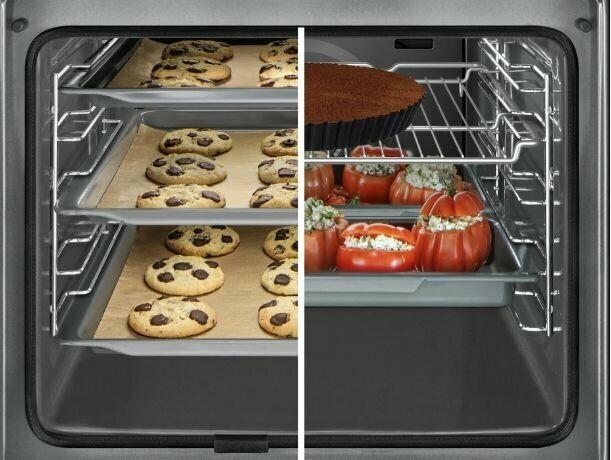 быстрый нагрев, добавление пара, подогрев посуды, размораживание, таймер, 59.5, Вентилятор охлаждения, Встроенная книга рецептов, Встроенные часы, Встроенный парогенератор, Двухуровневое приготовление, Дисплей, Доводчик дверцы духовки, Термощуп
