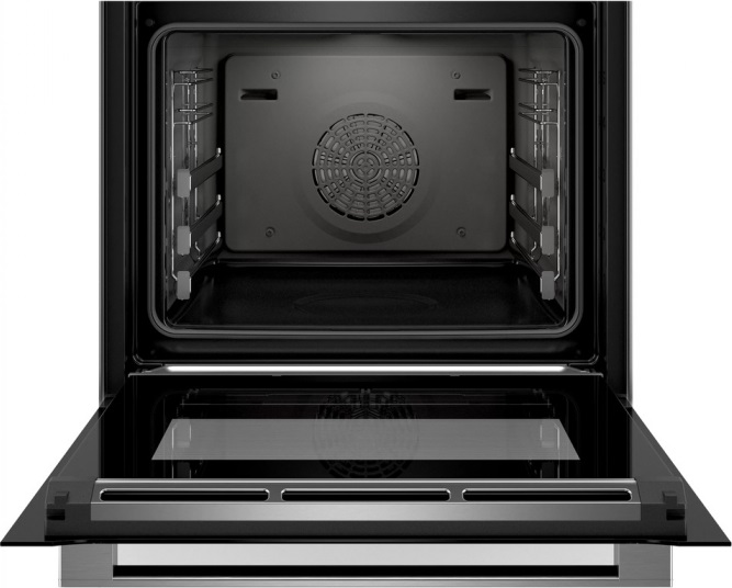 4D-горячий воздух 4D-горячий воздух Система «4D-горячий воздух» (4DHotАir) вдуховых шкафах немецкой фирмы Bosch изновейшей серии 8позволяет готовить нанескольких уровнях одновременно без смешивания вкусов изапахов. Обычно при приготовлении блюд вдуховом шкафу указывается, накаком уровне должен размещаться противень, чтобы получить лучший результат, так как даже если назадней стенке установлен вентилятор, распределение нагретого воздуха нестановится равномерным. Такой вентилятор скрыльчаткой изнержавеющей стали имеется ивдуховках, оснащенных программой «4D-горячий воздух», нодля него разработан специальный режим вращения— потри минуты вкаждую сторону— для оптимального перемешивания воздуха. Кроме того, выходные отверстия для горячего воздуха вбоковых стенках рабочей камеры размещены таким образом, чтобы охватывать все пространство между противнями. Нагрев вэтом случае производится при помощи кольцевого нагревательного элемента. Современные духовки ссистемой «4D-горячий воздух» очень удобны вочистке, поскольку вентилятор располагается сзади заспециальной решеткой. Бесшумную работу устройства гарантирует движение эффективный итихий двигатель EcoSilence Drive.