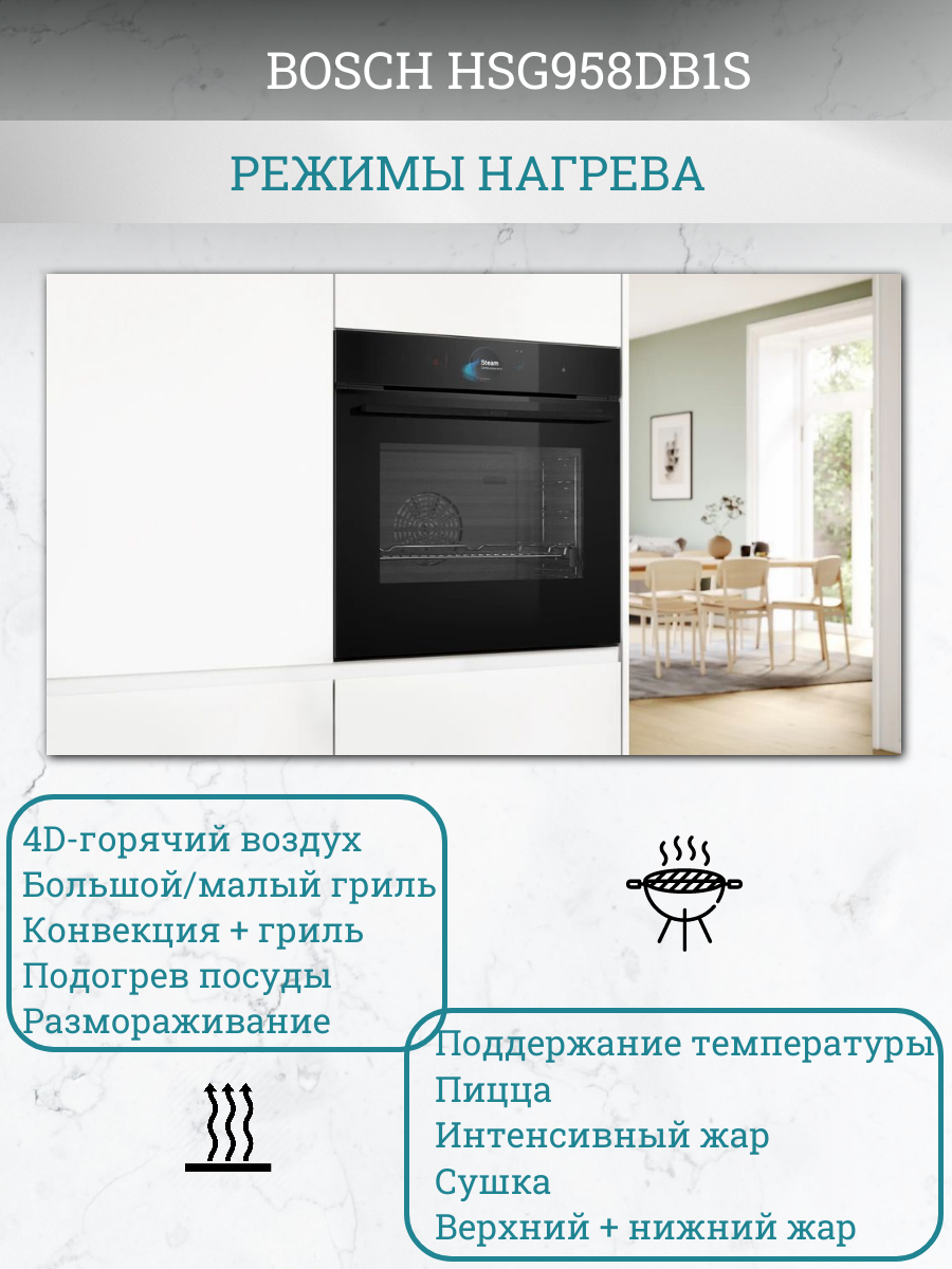 большой гриль, верхний нагрев + нижний нагрев, конвекция, малый гриль, нижний нагрев