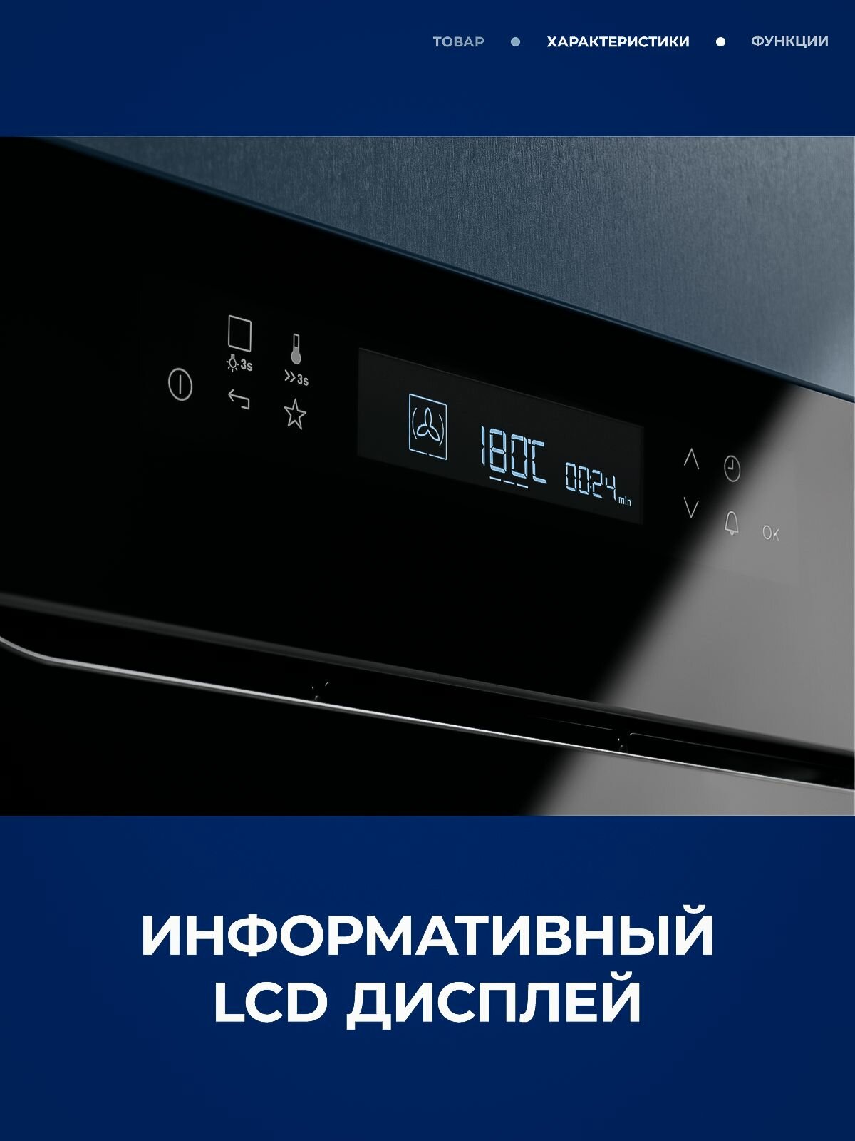 дисплей, подсветка камеры, тангенциальное охлаждение, телескопические направляющие, термощуп, часы, эмаль легкой чистки