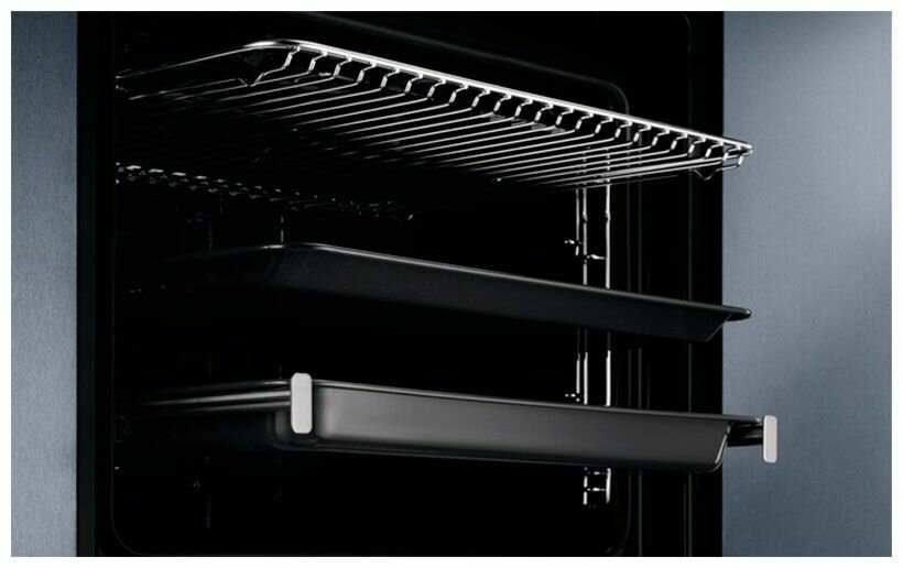 тип направляющих: хромированные, легкосъемные Easy Entry; тип часов: электронные; вентилятор охлаждения; тип таймера: звуковой с отключением; многоуровневая готовка; длина шнура 1.5м