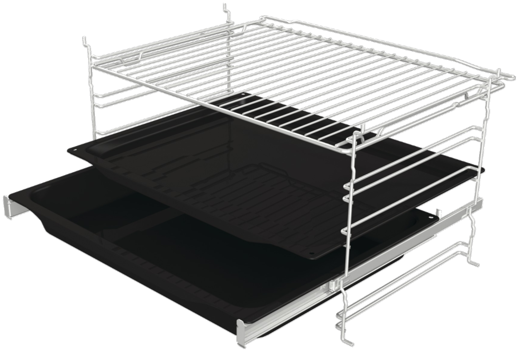 духовой шкаф - 1 шт; решетка - 1 шт; противень - 2 шт; документация