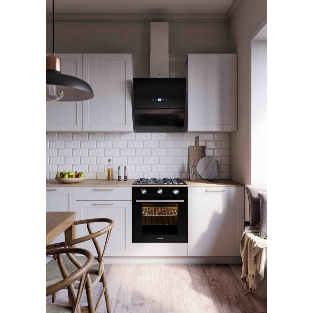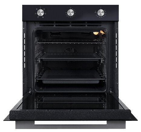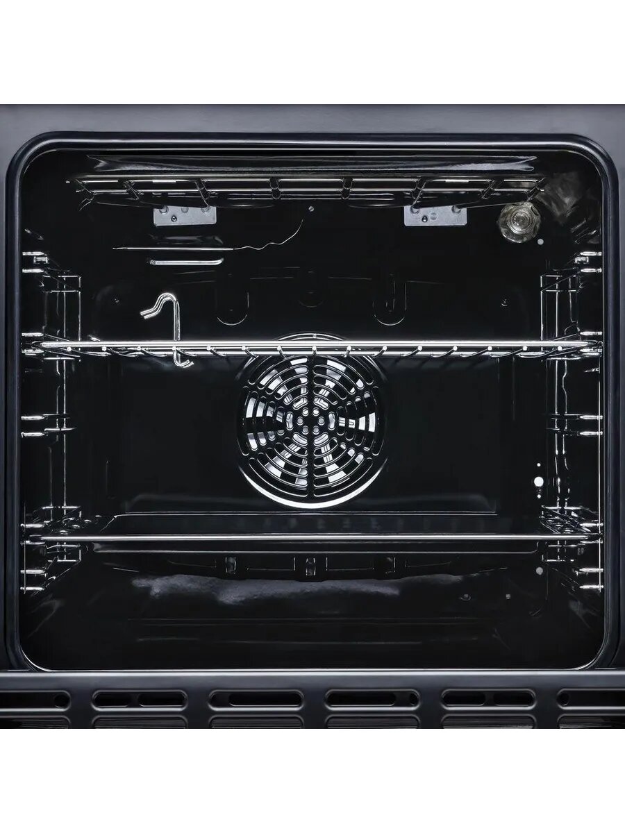 быстрый нагрев, размораживание, таймер, Вентилятор охлаждения, Доводчик дверцы духовки, Полностью стеклянная внутренняя дверца, Система вентиляции, Управление Classic Control, Хромированные направляющие
