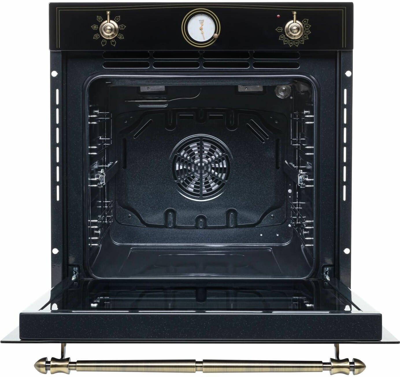 быстрый нагрев, размораживание, таймер, Вентилятор охлаждения, Встроенные часы, Дизайн Ретро, Доводчик дверцы духовки, Хромированные направляющие