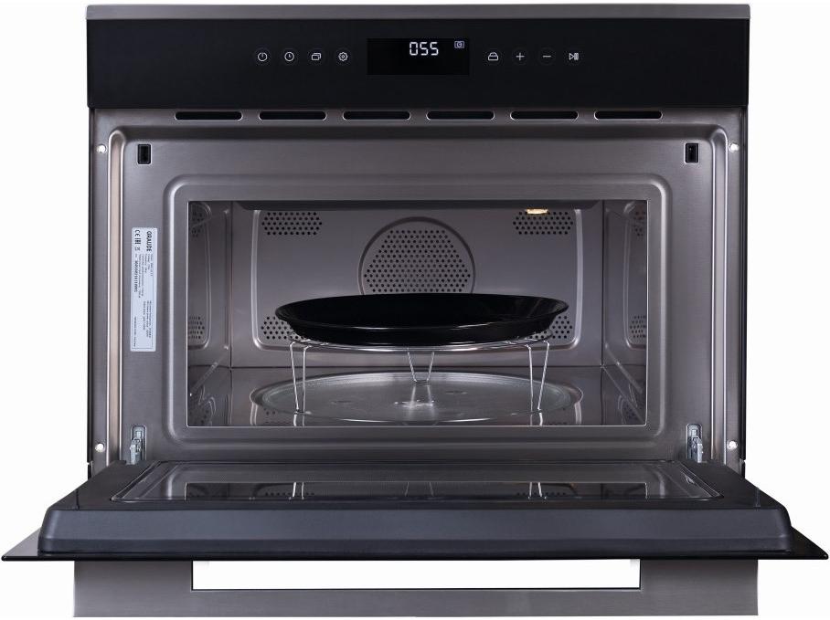 Микроволны + гриль Микроволны + гриль Микроволны + гриль вдуховом шкафу— один изклассических способов нагрева, который позволяет нетолько разогревать иразмораживать готовую пищу, ноисоздавать разнообразные полноценные блюда споджаристой хрустящей корочкой. Как известно, вСВЧ-печи происходит нагревание нетолько поверхности, ноивсего объема продуктов. Это позволяет значительно сократить продолжительность приготовления или разогрева пищи, однако готовое блюдо зачастую утрачивает привлекательный вид ивыглядит как вареное. Гриль, расположенный вверхней части рабочей камеры, воздействует наблюдо посредством инфракрасного излучения так, что верхняя часть блюда запекается. Приготовление спомощью микроволн игриля может производиться без добавления масла или жира, так что оно подойдет идля диетических блюд. При помощи этого режима можно готовить различные запеканки под сыром или панировкой— втом числе изпасты иовощей, мясные рулеты, лазаньи, птицу имясо, запеченные под сыром. При выборе подобного режима необходимо обратить особое внимание наматериал посуды, вкоторой будет готовиться блюдо: она должна подходить идля микроволн, идля гриля— например, изогнеупорной керамики.
