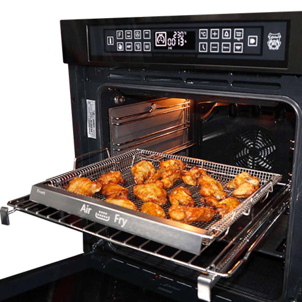интеллектуальное электронное управление. низкотемпературный режим (35 - 50 °С). экономичный режим. подогрев посуды. акустический сигнал. освещение духовки. блокировка от детей. вентилятор охлаждения. глубокий противень, мелкий противень, ухват для противней, решетка, полка для жарки Air Fry и термощуп в комплекте. цвет: черный / серебристый.