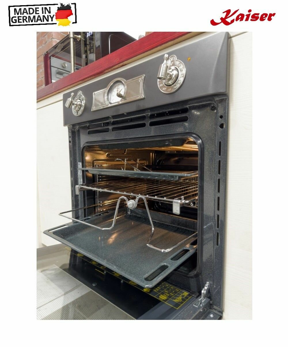 Духовой шкаф 60 см Kaiser Empire EH 6355 EmSil, эмалированный противень, глубокий эмалированный противень, хромированная многофункциональная решетка, вертел, рамка с вилкой для вертела, хромированный ухват для противней, уровней для установки противней, хромированные лестнички для противней, телескопические направляющие, инструкция, гарантийный талон МЫ ОТПРАВЛЯЕМ ТОВАРЫ СПЕЦИАЛИЗИРОВАННЫМ ПЕРЕВОЗЧИКОМ, С ДОПОЛНИТЕЛЬНОЙ ТРАНСПОРТИРОВОЧНОЙ ЗАЩИТНОЙ УПАКОВКОЙ. ДОСТАВКА ОСУЩЕСТВЛЯЕТСЯ ПО АДРЕСУ КЛИЕНТА