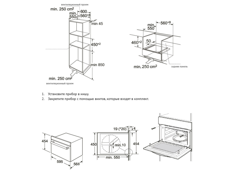 большой гриль, верхний нагрев + нижний нагрев, гриль, конвекция, малый гриль, нижний нагрев, Верхний + нижний нагрев + конвекция, Размораживание, Турбо гриль
