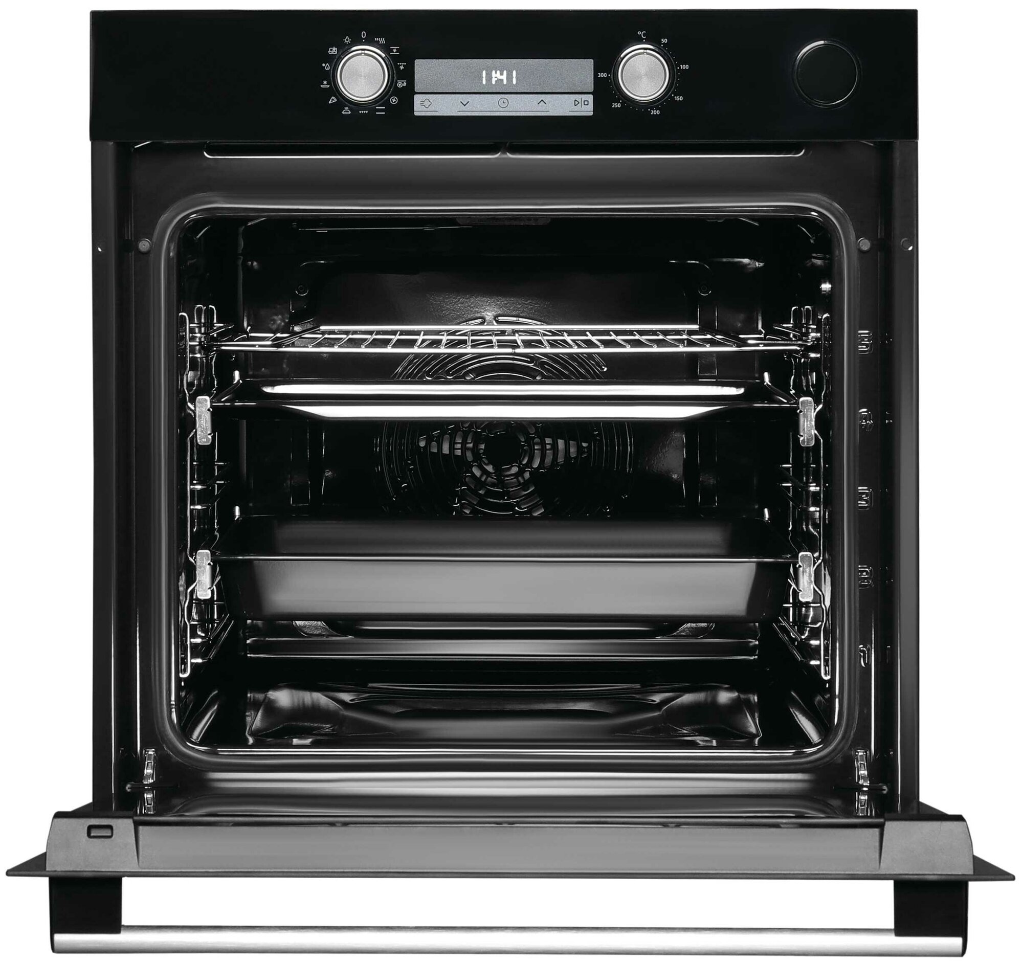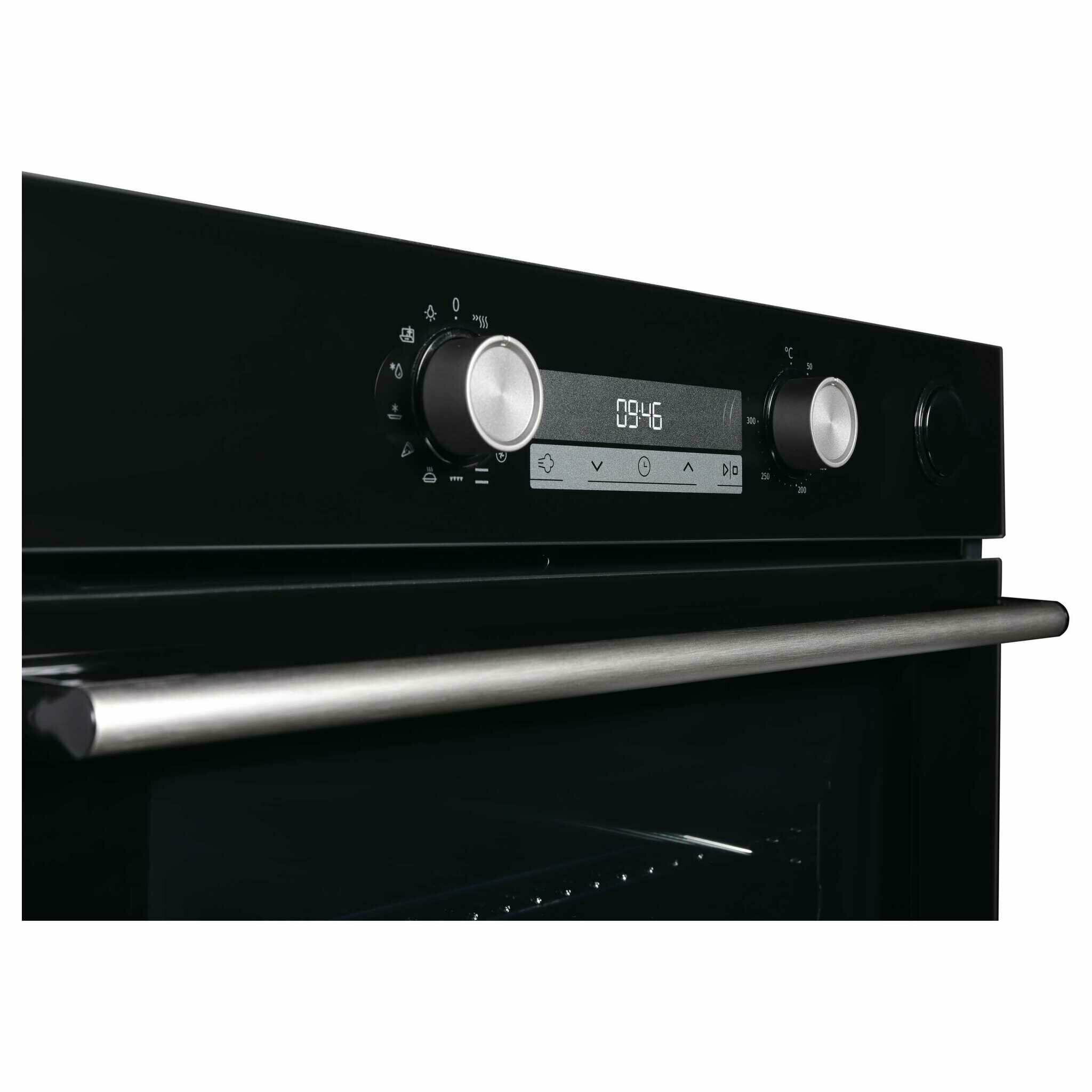 быстрый нагрев. диапазон температур: 50 - 300 °С. приготовление с паром Steam Assist. тангенциальное охлаждение. автоматическое отключение. доводчик двери. длина шнура питания - 1.5 м. глубокий противень, перфорированный противень, хромированная решетка и термощуп Food Probe в комплекте.