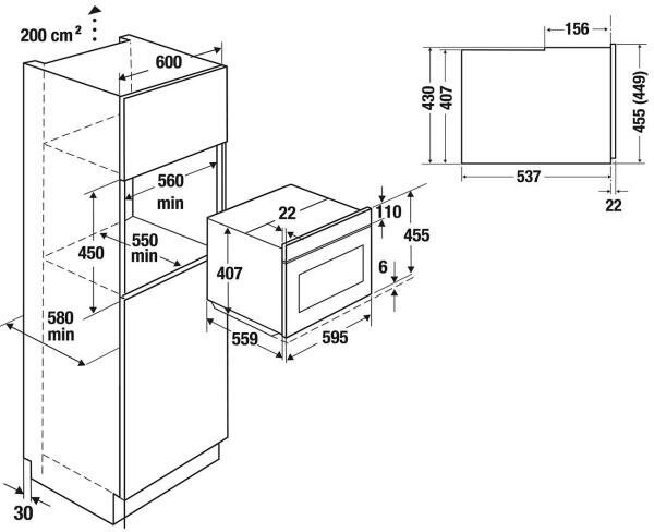Ширина встраивания (см)