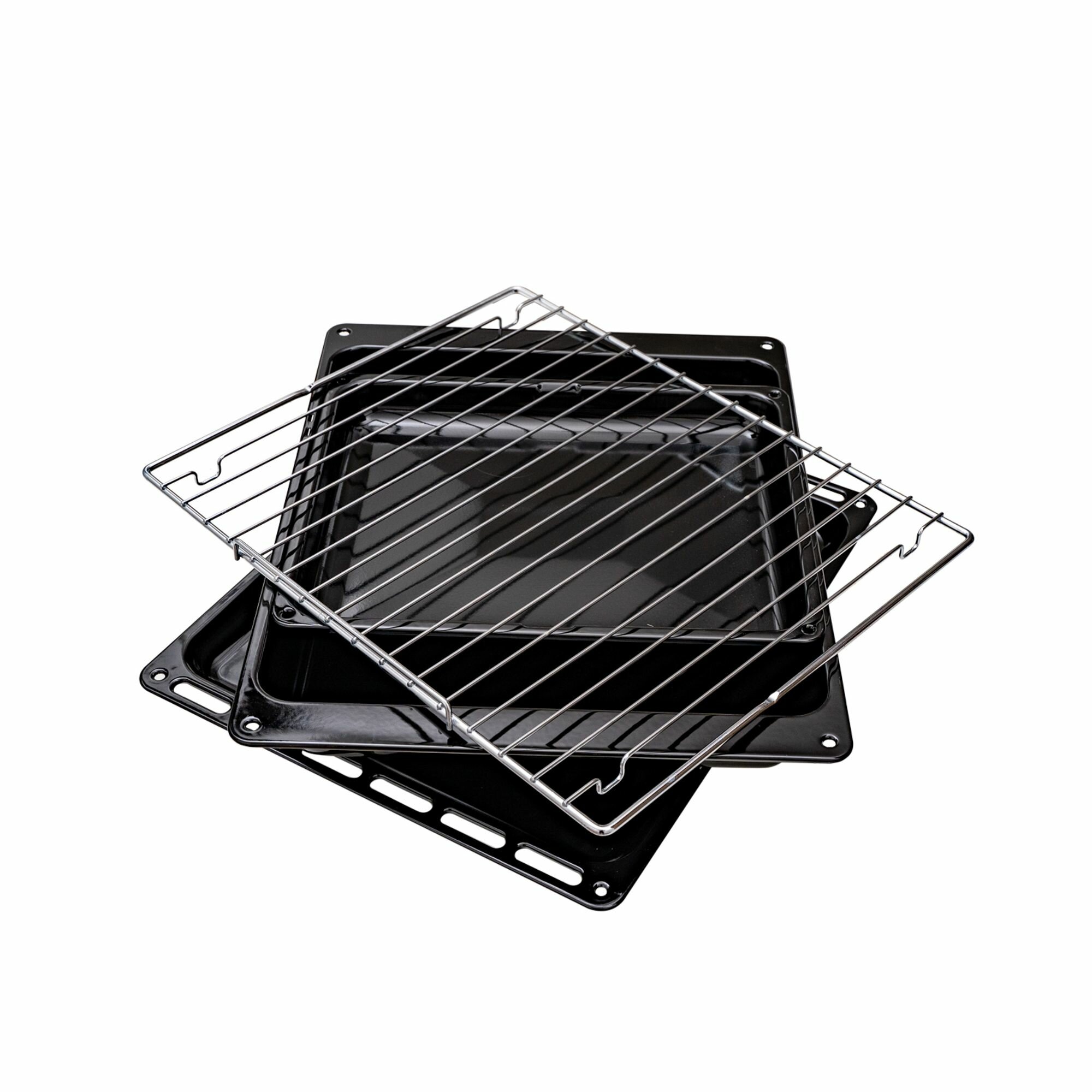 духовой шкаф - 1 шт, глубокий противень - 1 шт, прямоугольный противень - 2 шт, хромированная решетка - 1 шт, документация
