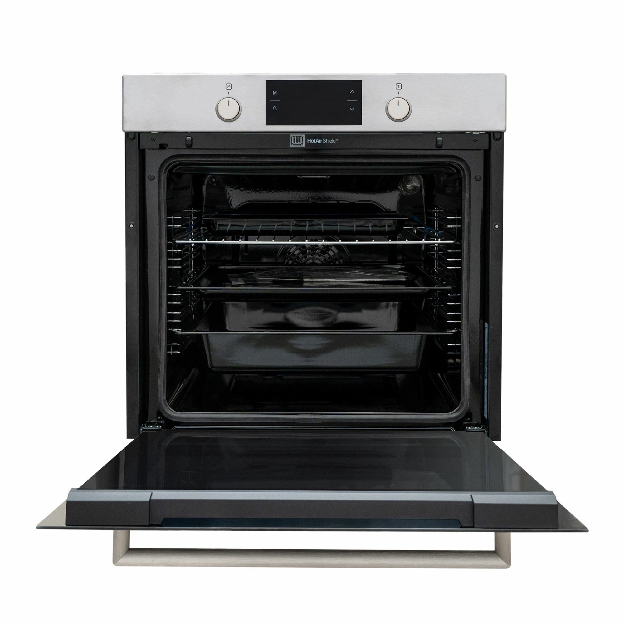 быстрый нагрев, размораживание, таймер, HOT AIR SHIELD делает процесс приготовления более безопасным, Вентилятор охлаждения, Встроенные часы, Двухуровневое приготовление, Дисплей, Доводчик дверцы духовки, Защитное покрытие от отпечатков пальцев, Хромированные направляющие, предотвращая выход горячего воздуха наружу при открытии дверцы
