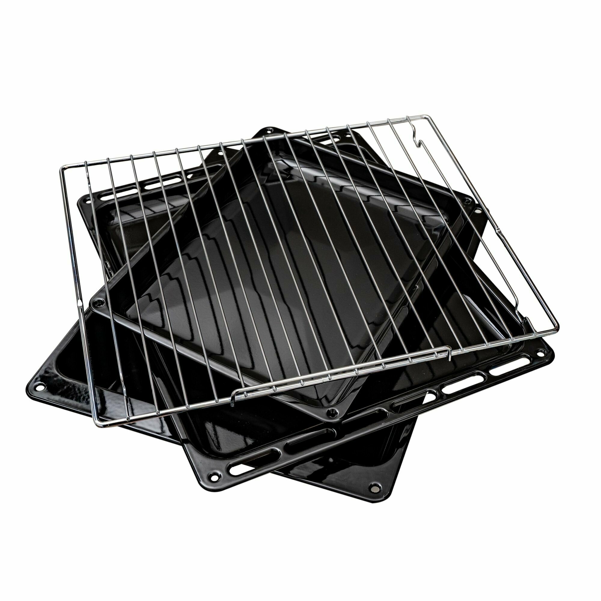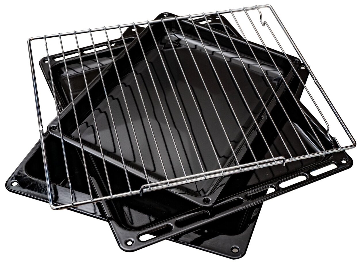 Хромированная решетка, 2 Универсальных противня с антипригарным покрытием Easy Clean, 1 глубокий (80 мм) противень с антипригарным покрытием Easy Clean