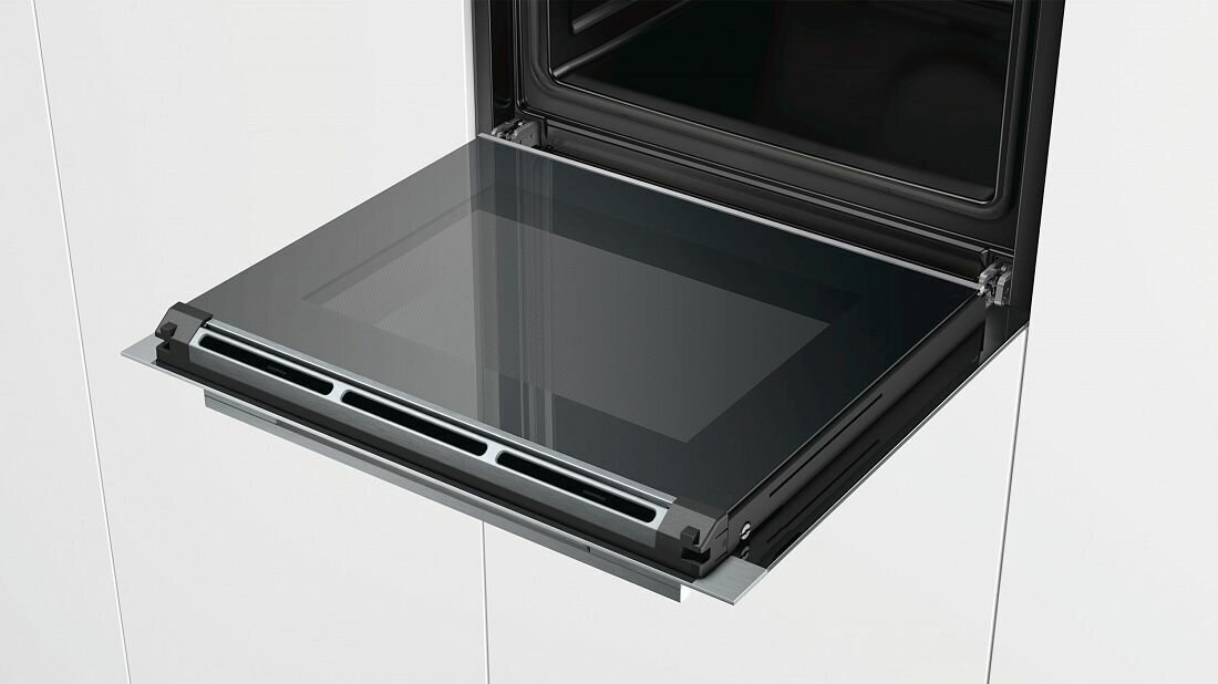 быстрый нагрев, подогрев посуды, размораживание, таймер, Вентилятор охлаждения, Встроенные часы, Двухуровневое приготовление, Дисплей, Доводчик дверцы духовки, Хромированные направляющие