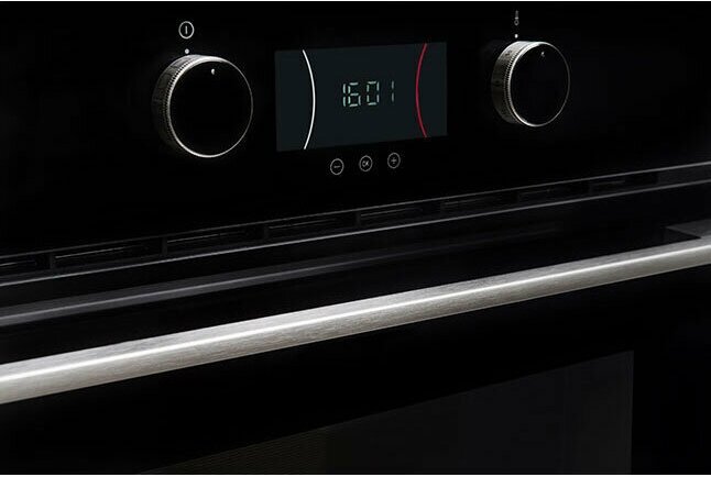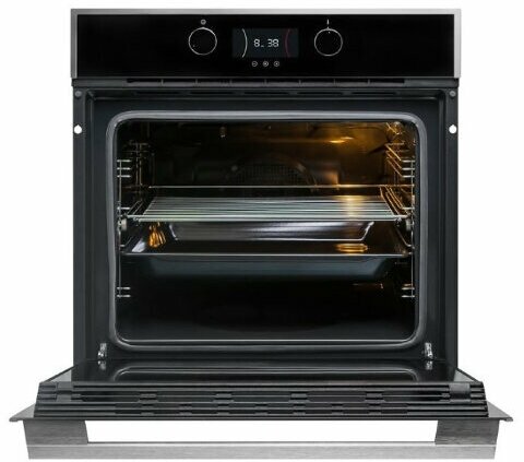 быстрый нагрев, размораживание, таймер, экорежим, Вентилятор охлаждения, Встроенные часы, Дисплей, Доводчик дверцы духовки, Хромированные направляющие