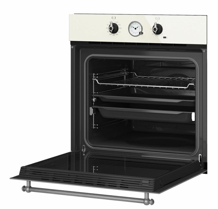 быстрый нагрев, размораживание, экорежим, Вентилятор охлаждения, Встроенные часы, Хромированные направляющие, дизайн ретро