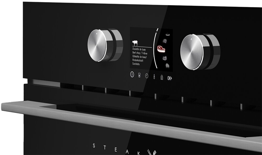 Любители мяса точно оценят духовой шкаф по достоинству, ведь в нём можно приготовить массу мясных блюд: от стейков до антрекотов и гамбургеров. SteakGrill с нагревом гриля до 700 градусов порадует идеальной аппетитной корочкой. На литой чугунной решётке можно приготовить любой кусок мяса, выбрав оптимальный вариант размещения.