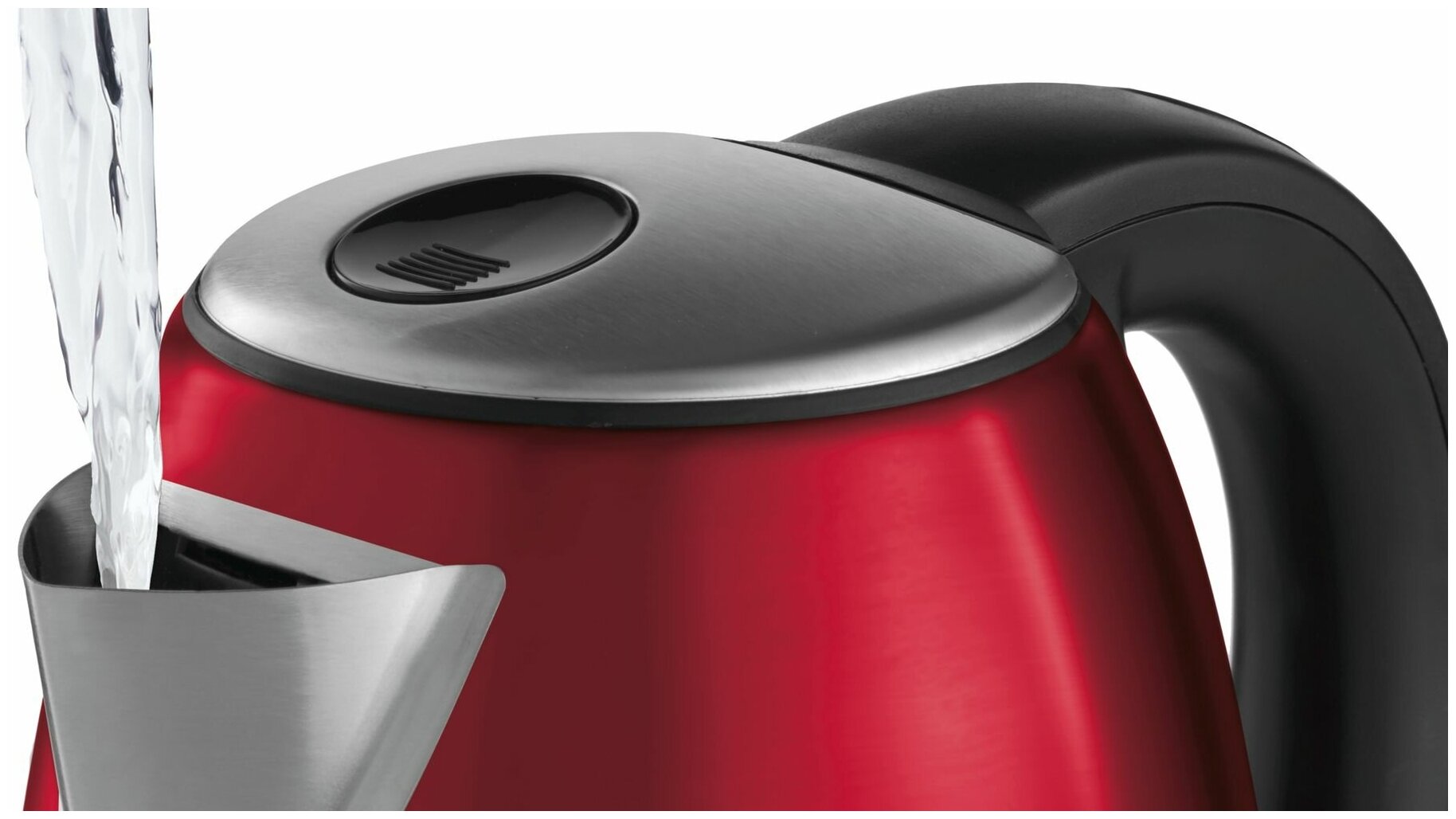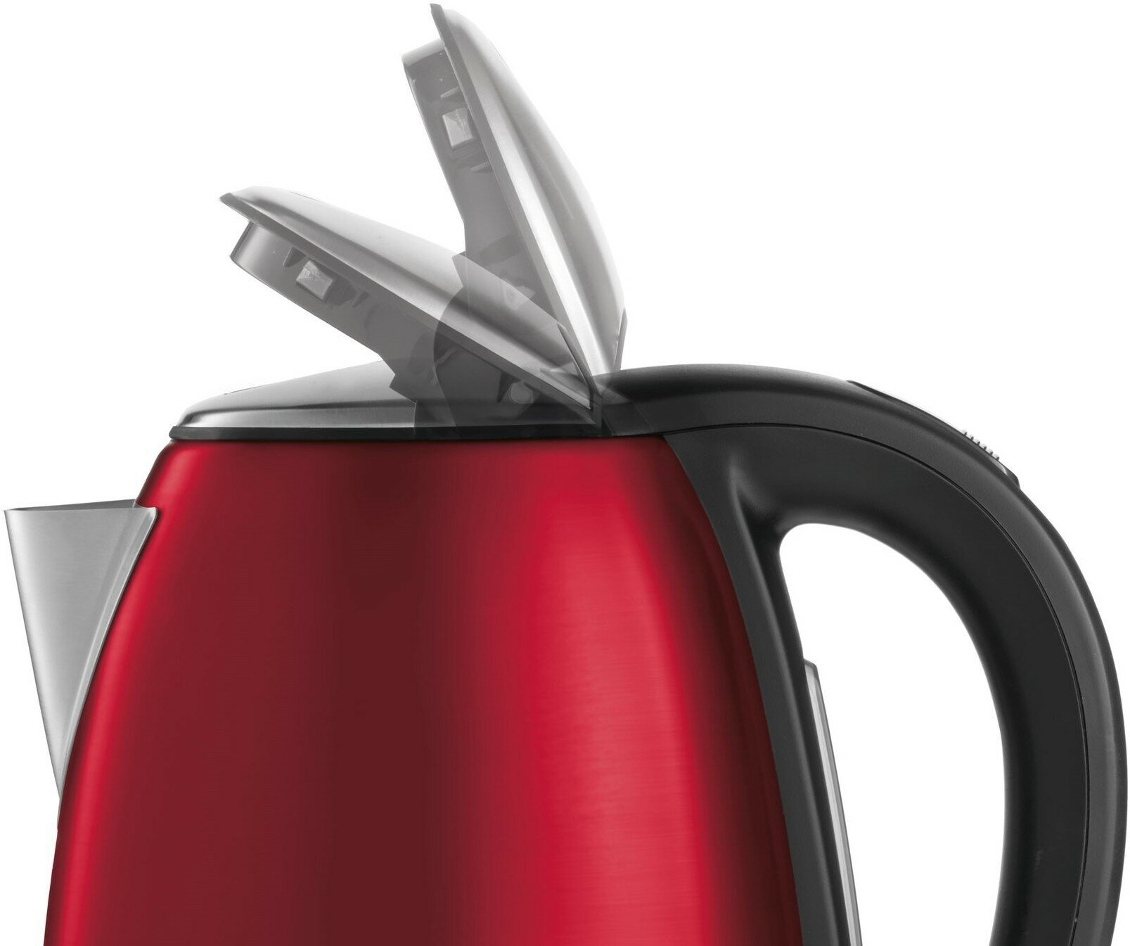 Легко читаемая шкала уровня воды: Автоматическое отключение: Защита от перегрева: Отключение при отсутствии воды: Крышка легко открывается нажатием кнопки