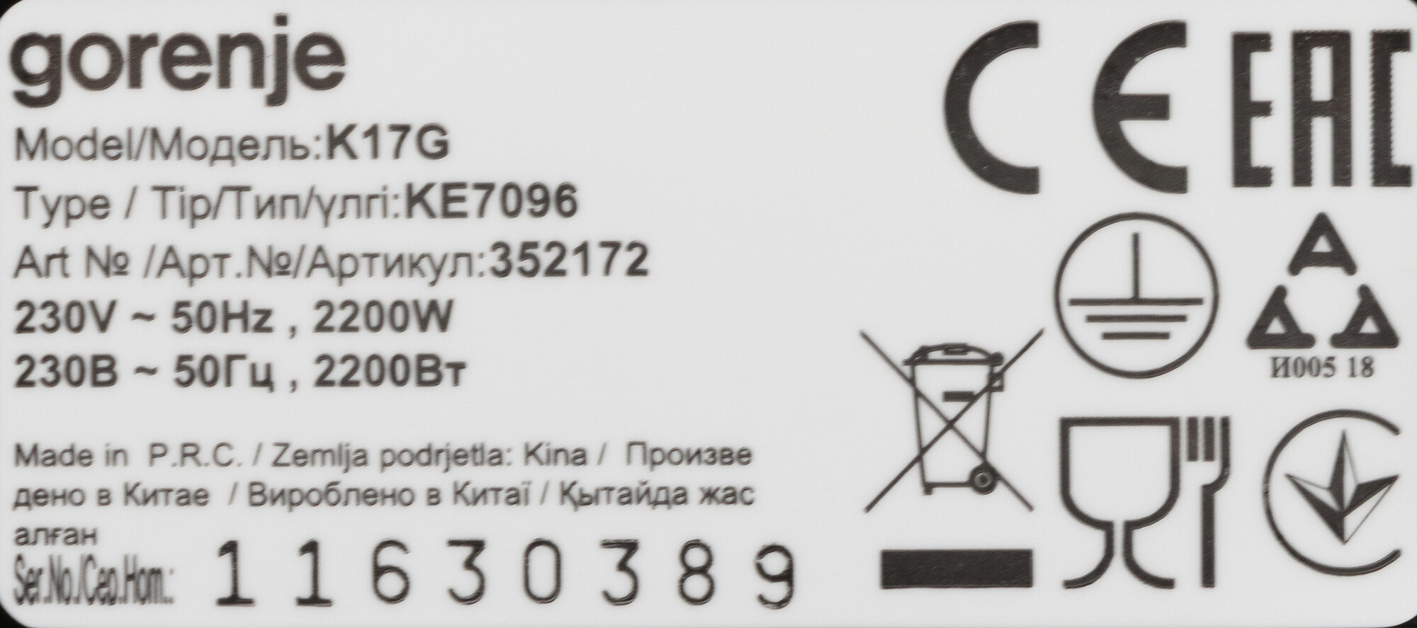 Электрочайник GORENJE K17G