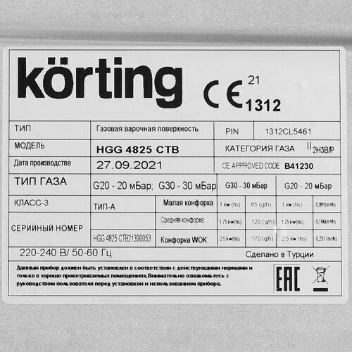 Скачать документы для Газовая варочная панель Korting HGG 4825 CTB