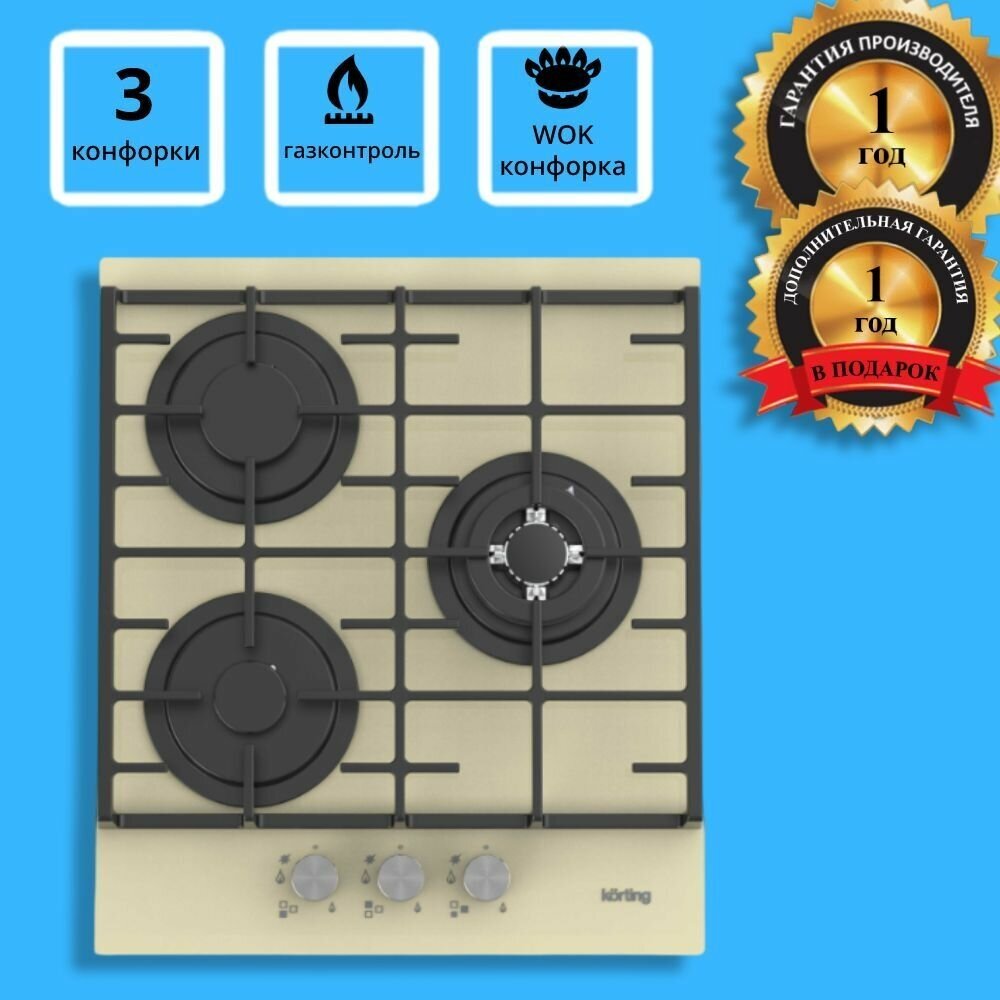 чугунные решетки, газ-контроль, дополнительные форсунки в комплекте, конфорка WOK, электроподжиг в поворотной ручке, электроподжиг в ручке (автоматический)