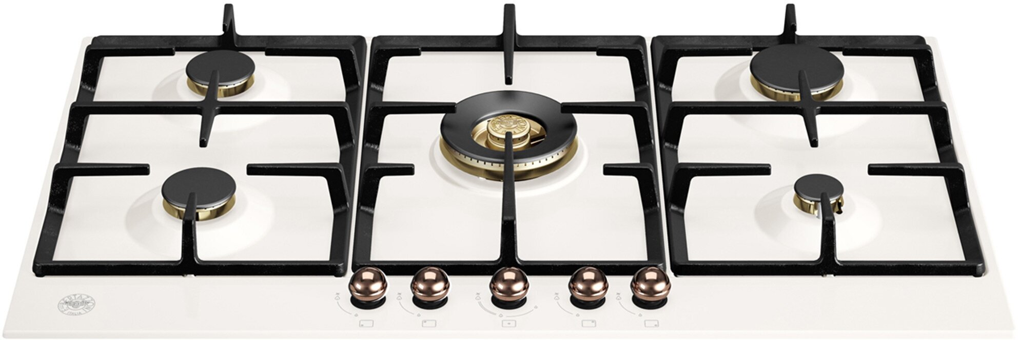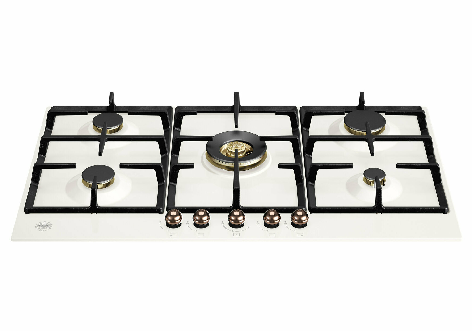 Газовая варочная панель Bertazzoni P905CHERAC слоновой кости с медной фурнитурой подходит как для современной, так и для классической кухни. Горелки из латуни доступны с различной мощностью; в центре - конфорка Dual WOK с тремя рядами пламени, что позволяет быстро готовить на сильном огне. На переднем крае панели металлические ручки, газ включается одним касанием благодаря автоматическому механизму.