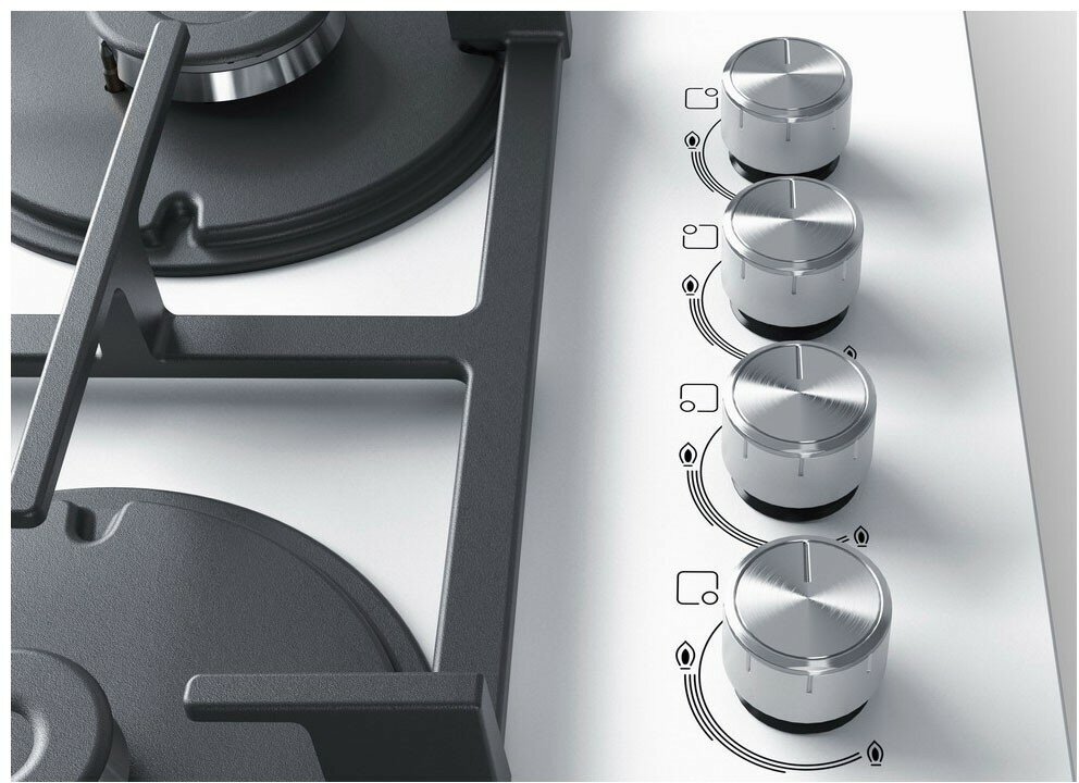 Газовая варочная панель Bosch POH6C2O90R имеет боковое расположение переключателей.