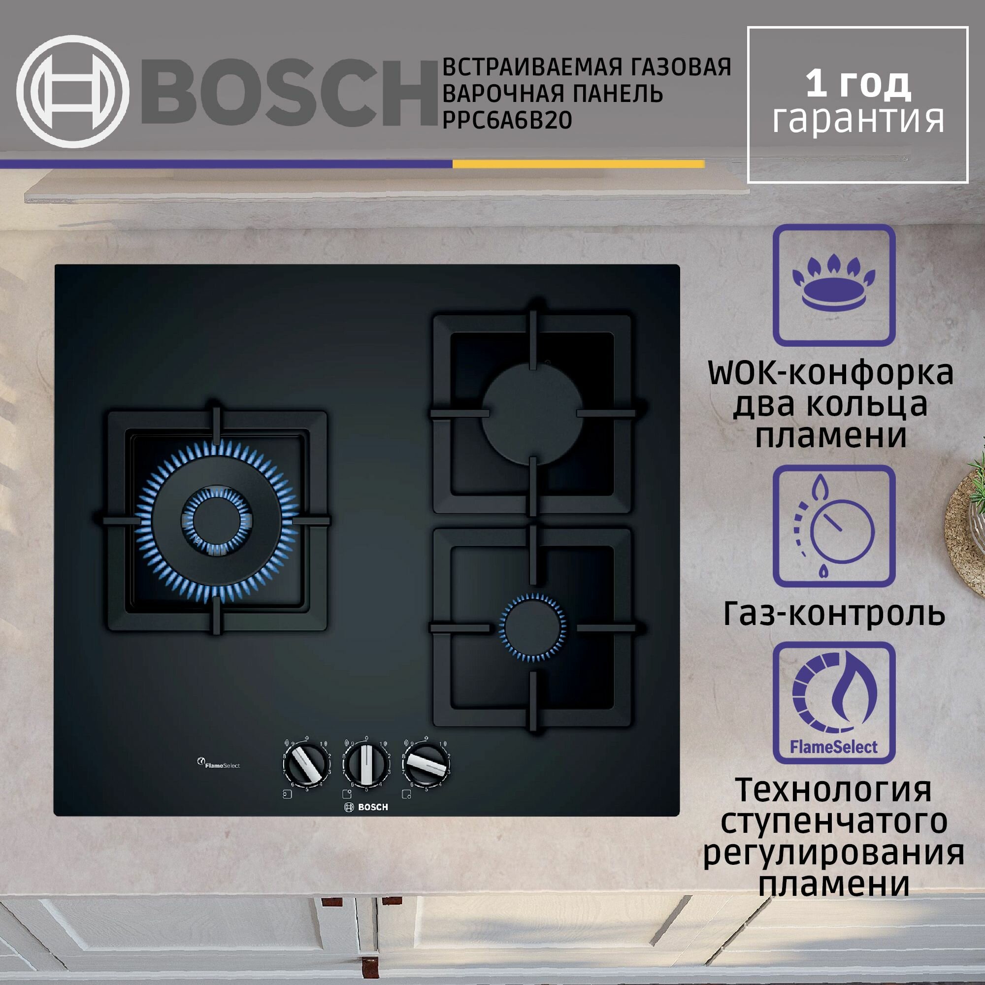 Газовая варочная панель Bosch PPC6A6B20