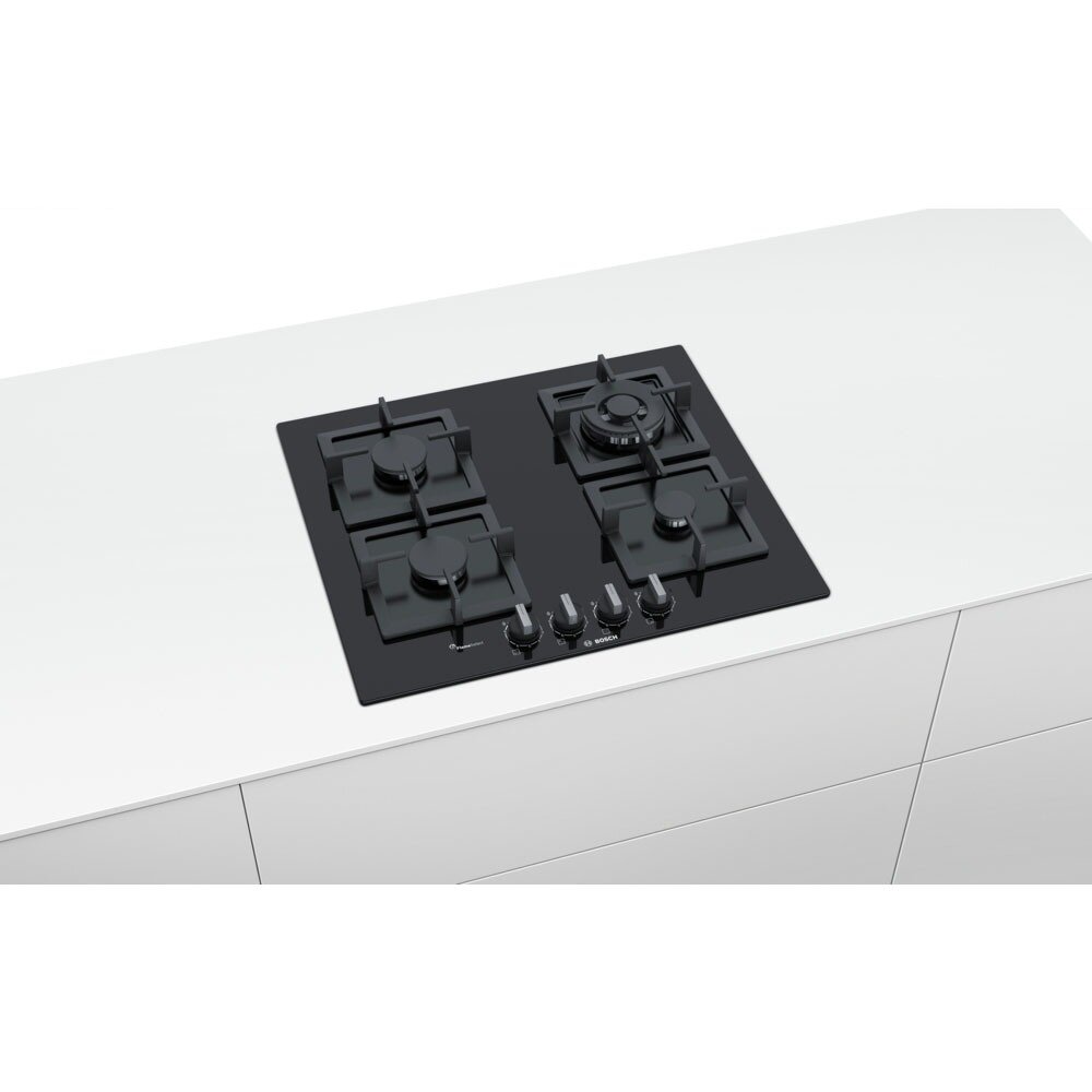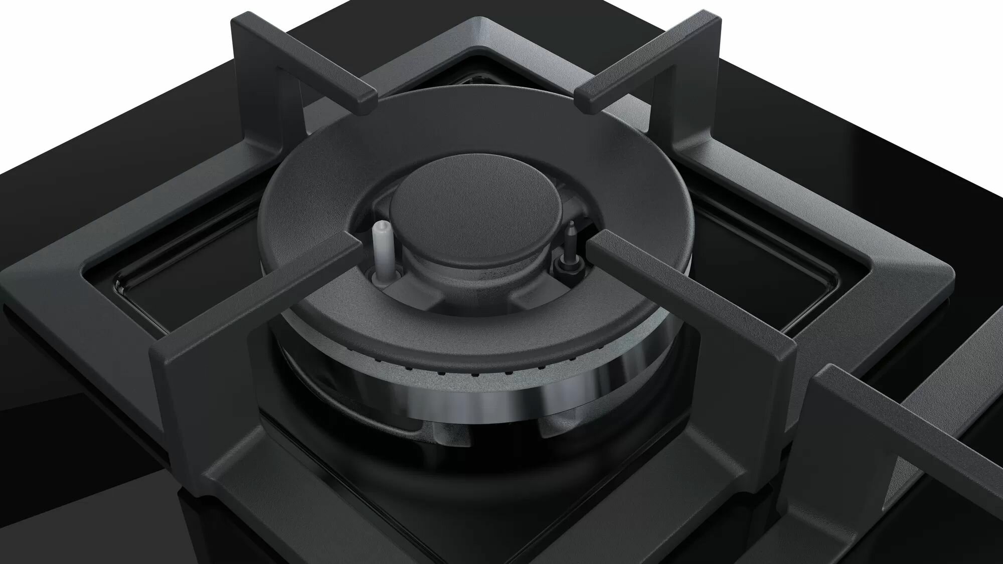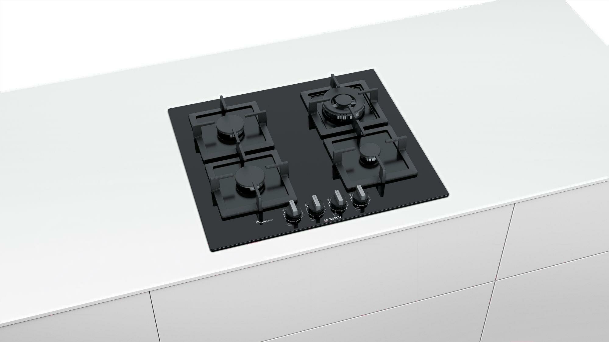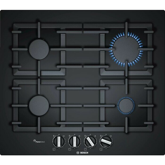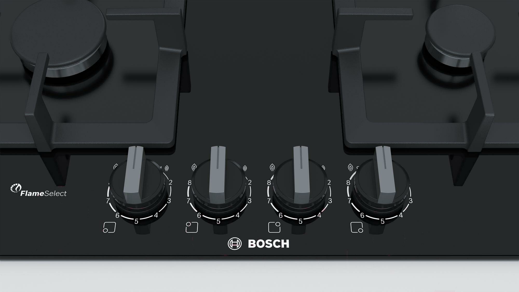 Газовая варочная панель Bosch PPH6A6B20 имеет рабочую поверхностью из закаленного стекла.