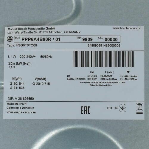 Газовая варочная панель Bosch PPP6A4B90R