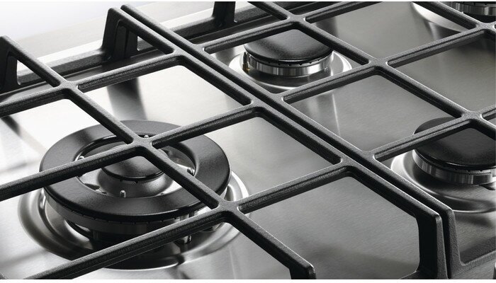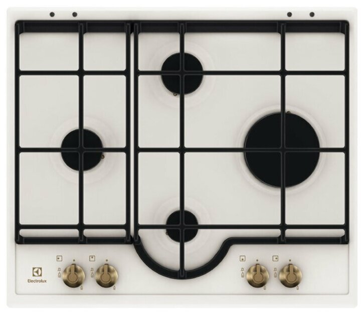 1 конфорка повышенной мощности 3 кВт, 1 экономичная конфорка, газ-контроль, длина сетевого шнура 1.1 м, конфорки стандартной мощности 2 кВт, электроподжиг