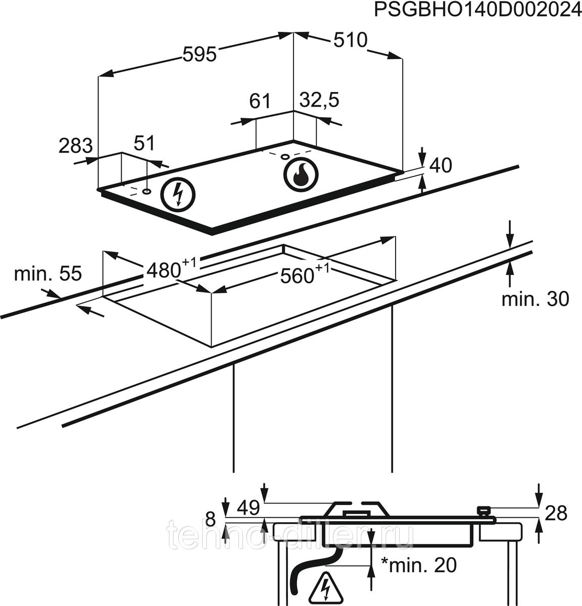 левая передняя конфорка: 2000Вт / 70 мм средняя передняя конфорка: 1000 Вт / 54 мм средняя задняя конфорка: 2000 Вт/70 мм правая передняя конфорка: 4000 Вт/128 мм