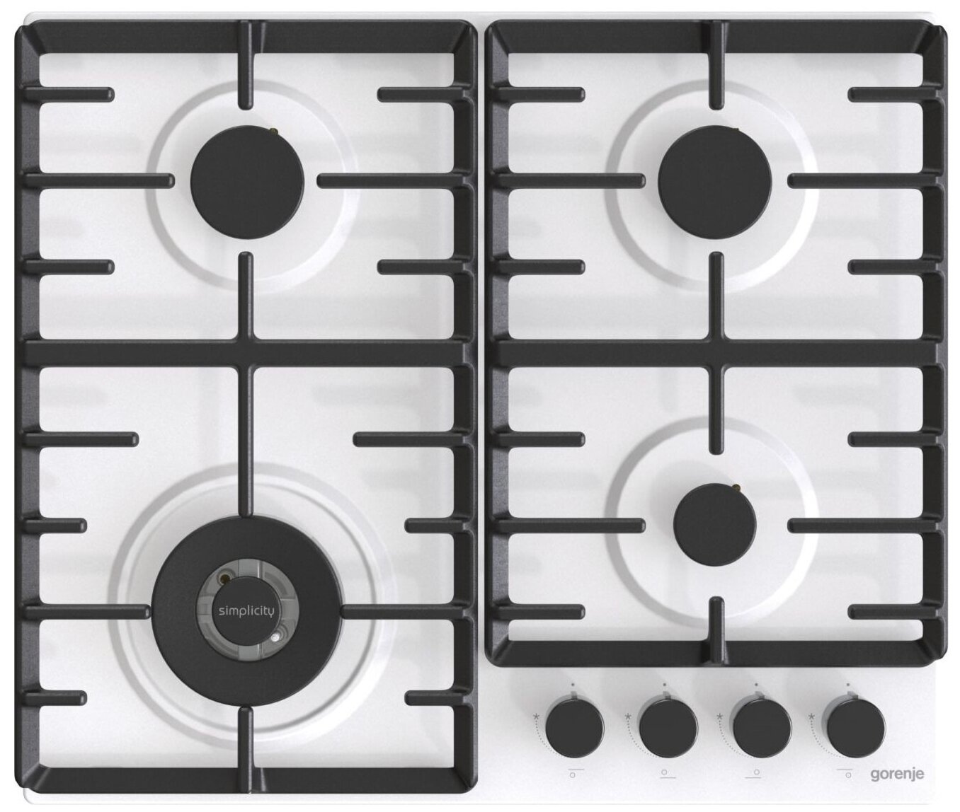 левая ближняя конфорка газовая, двухконтурная, мощность 3500 Вт; левая дальняя конфорка газовая, одноконтурная, мощность 1800 Вт; правая ближняя конфорка газовая, мощность 1050 Вт; правая дальняя конфорка газовая, мощность 1800 Вт