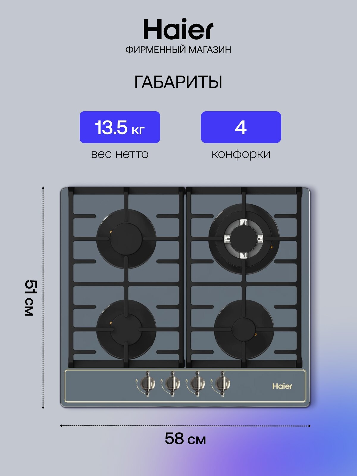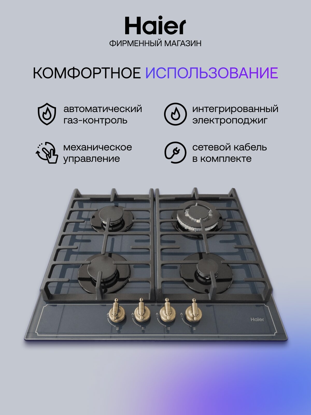 Газовая варочная панель Haier HHX-M64ATQBB