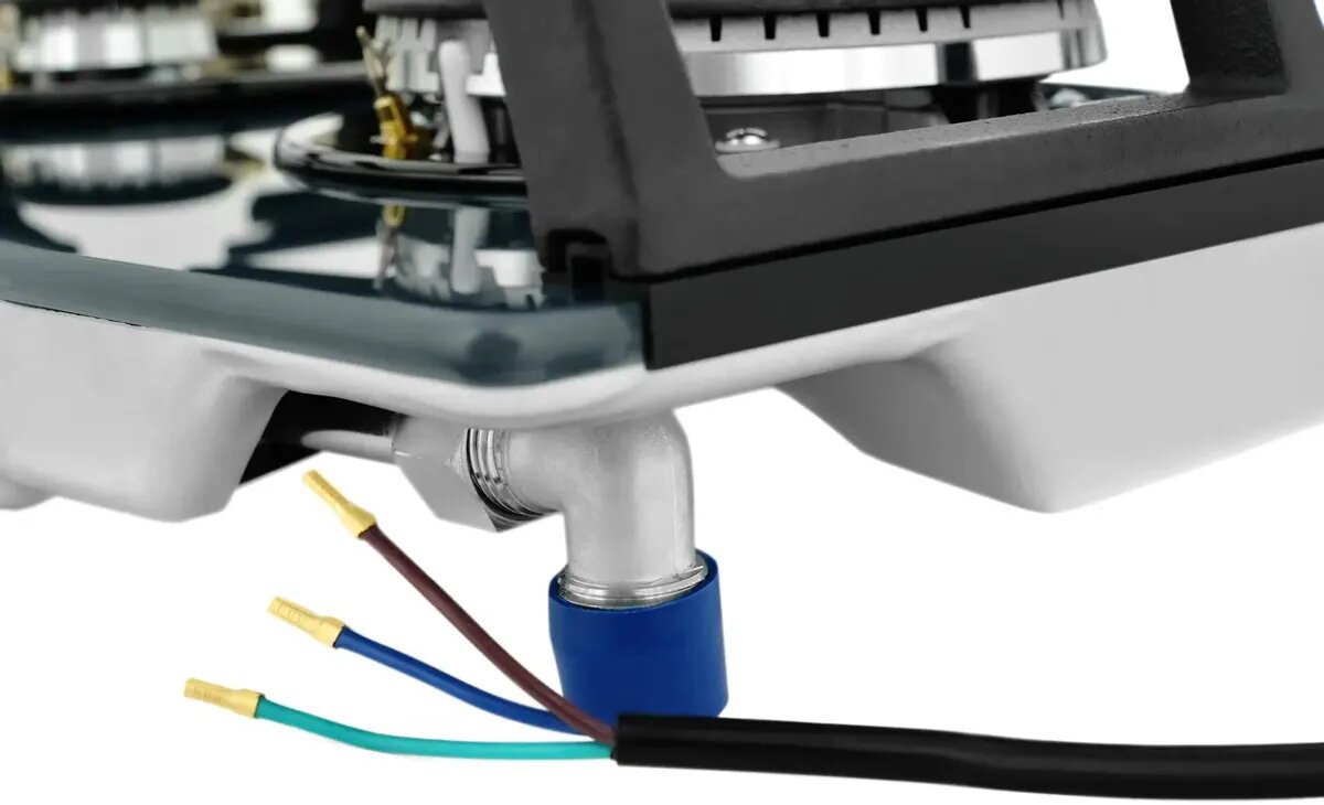 Передняя левая: Стандартная, 1,75 кВт Передняя правая: Стандартная, 1 кВт Задняя левая: Стандартная, 1,75 кВт Задняя правая: Вок-конфорка, 3,8 кВт
